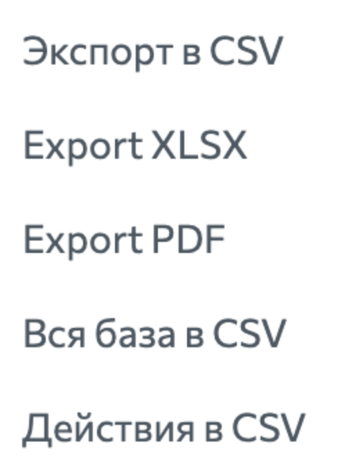 Всю информацию можно выгрузить в *.xls, *.csv или *.pdf: