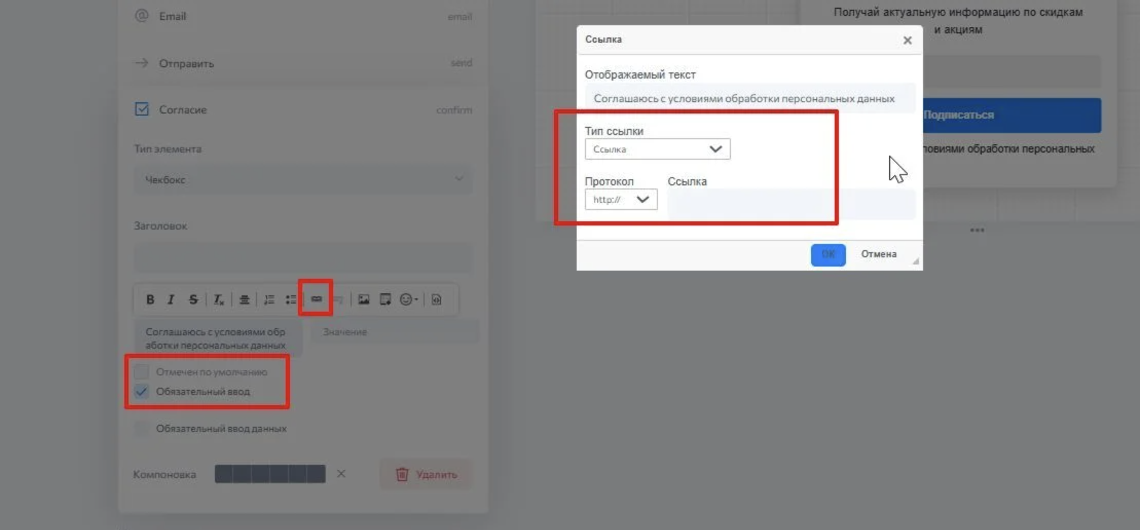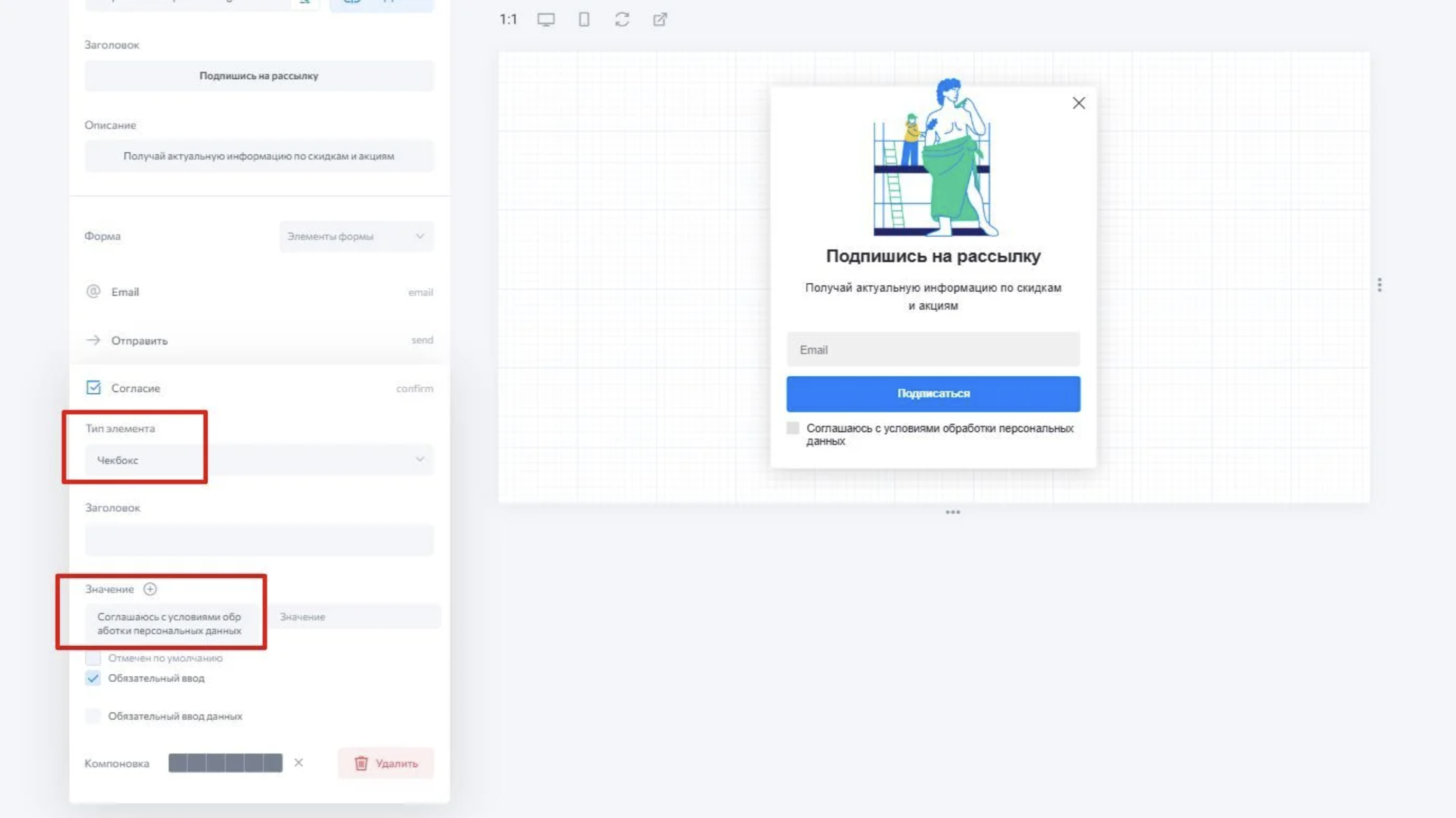 Создание виджета с чекбоксом согласия на обработку персональных данных