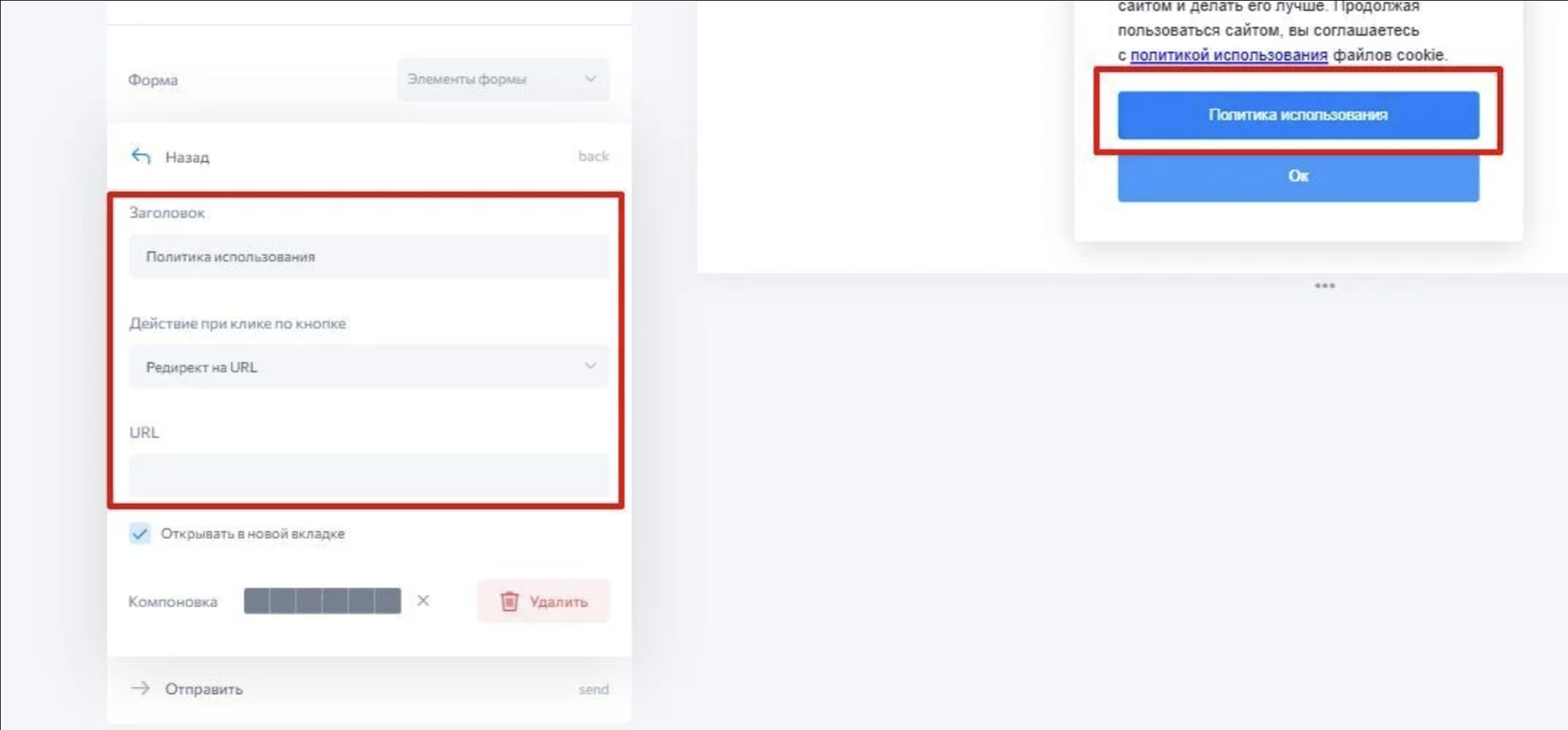 Создание виджета с ссылкой или кнопкой для перехода на Политику в отношении персональных данных