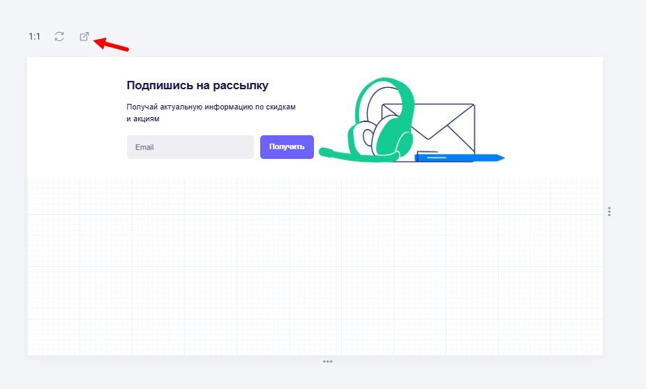 Чтобы посмотреть, как инлайн-виджет выглядит на странице, нажмите значок «Открыть в новой вкладке»: