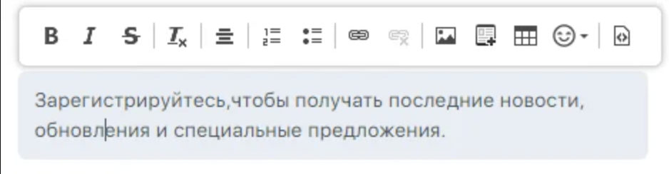 При выделении фрагмента описания, во всплывающем окне появляется редактор, расширяющий возможности редактирования: