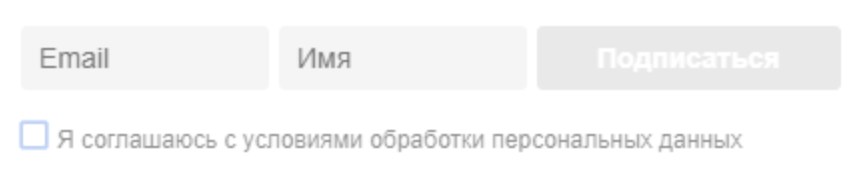 Данный элемент служит для подтверждения согласия пользователя сайта с политикой конфиденциальности при отправке формы. По умолчанию чекбокс отмечен. Если его деактивировать (что будет означать отсутствие согласия), то кнопка отправки формы станет неактивной (disabled) и форму технически невозможно будет отправить: