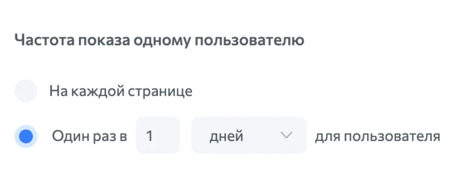 Эта настройка позволяет задать минимальный период, с которым будет появляться поп-ап. Обычно хорошим решением будет установка этого значения в несколько дней. Тем не менее, бывают оправданные случаи, когда может быть необходимо показ на каждой странице.