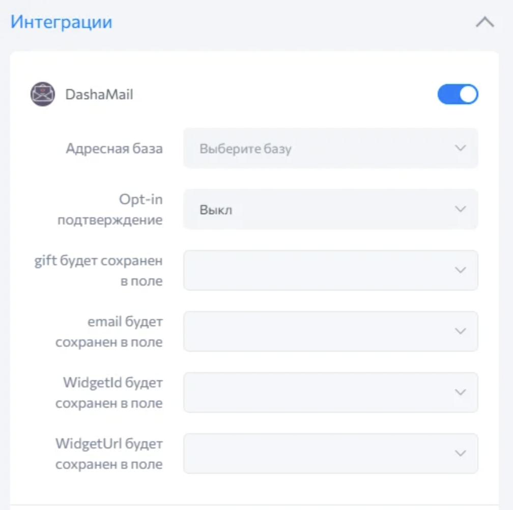 Если в разделе настроек сайта вы установили интеграцию с одним или несколькими из поддерживаемых внешних сервисов, то на вкладке Интеграции вы сможете произвести детальные настройки интеграций для данного поп-апа: