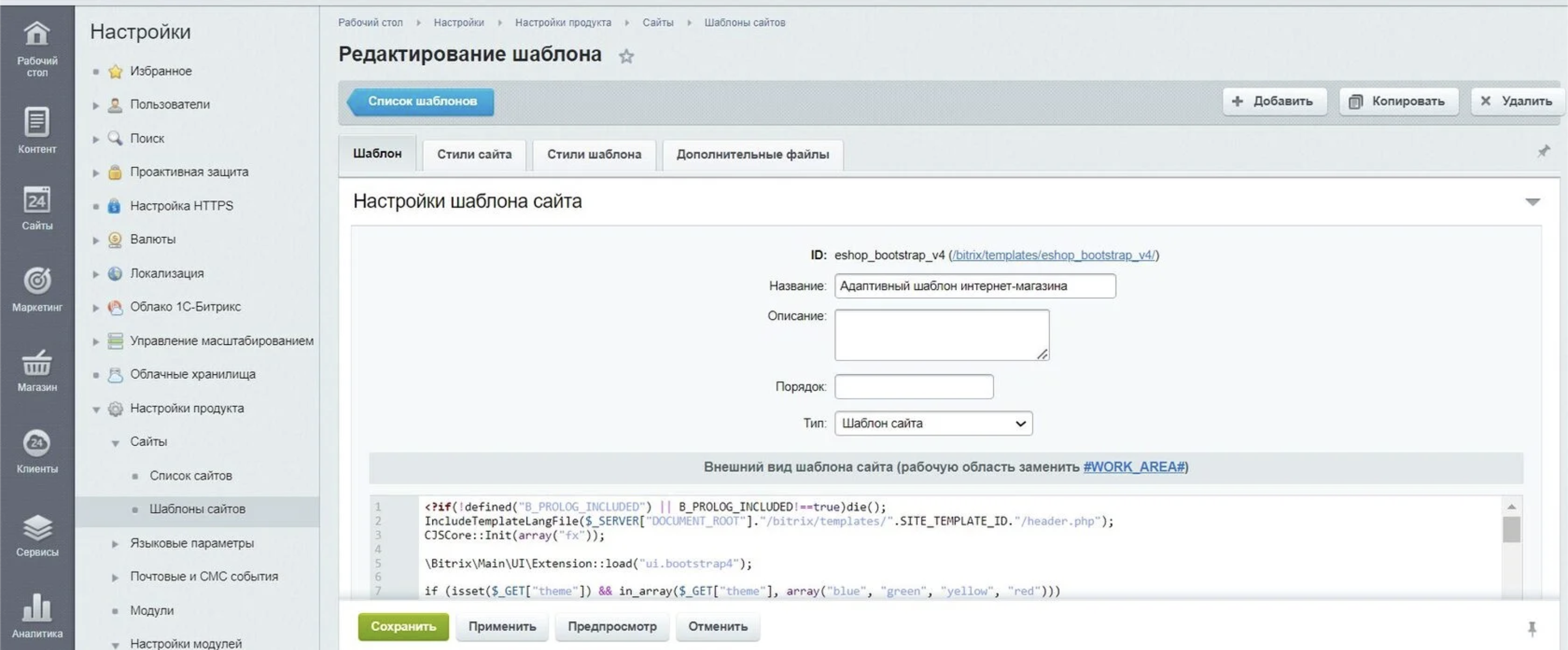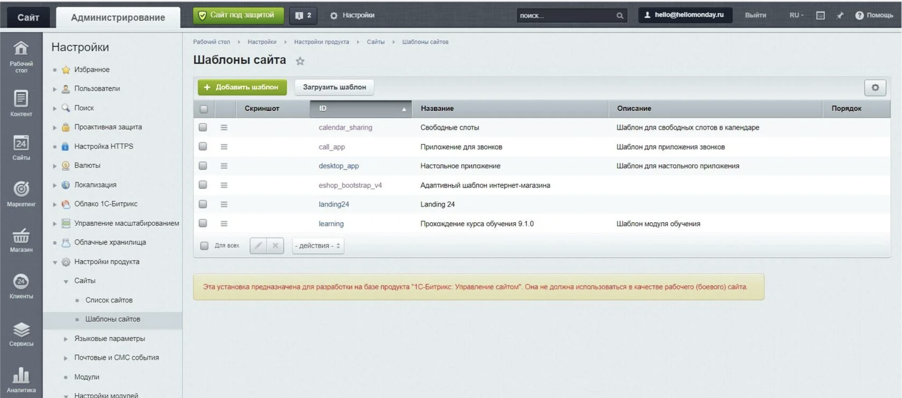 Перейдите в раздел "Настройки" → "Настройки продукта"→ "Сайты"→"Шаблоны сайтов".