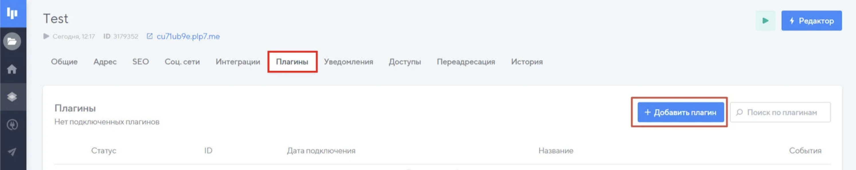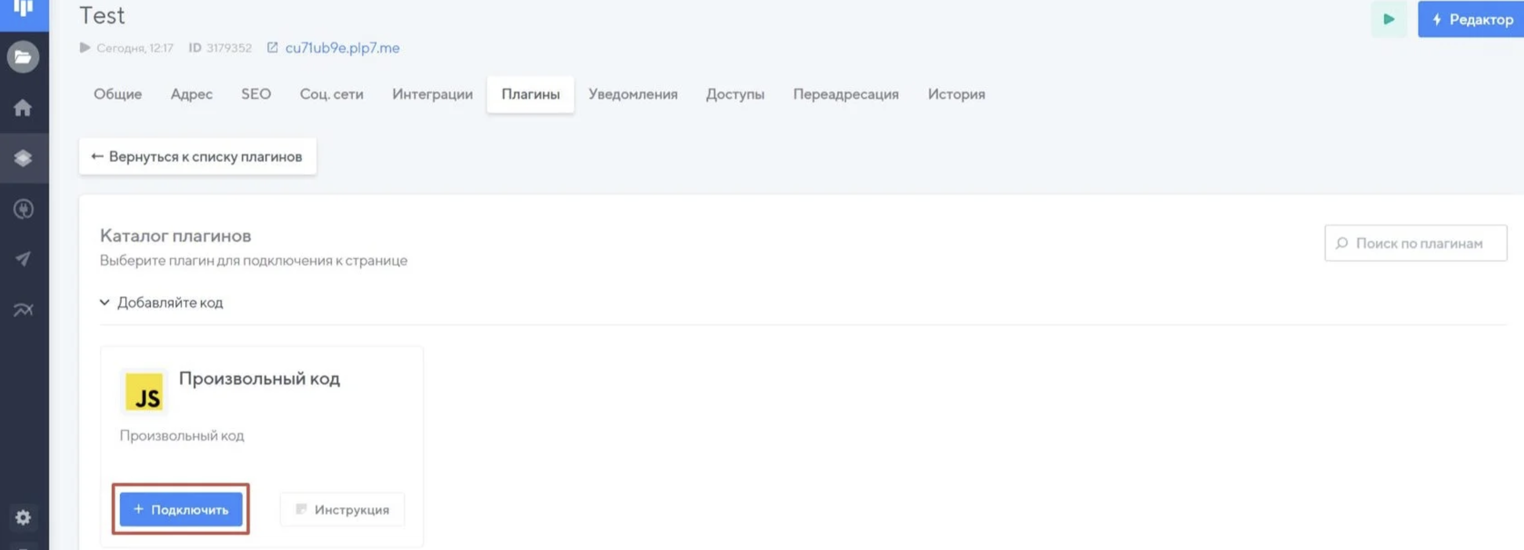 Перейдите в раздел "Плагины", нужно добавить плагин "Произвольный код".